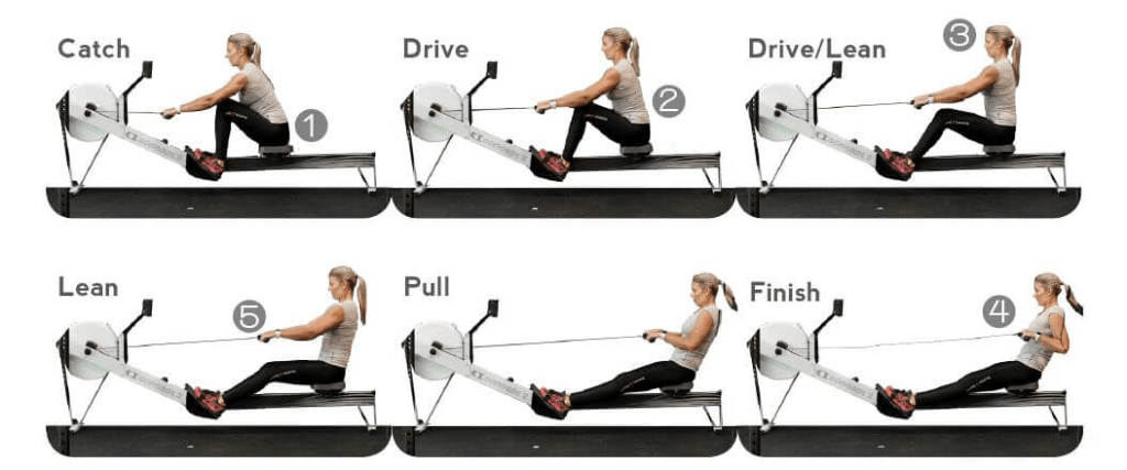 - Drive back: you should be driving yourself back, not lifting or pressing up. You shouldn’t feel yourself lift off the seat or come off it while you row.